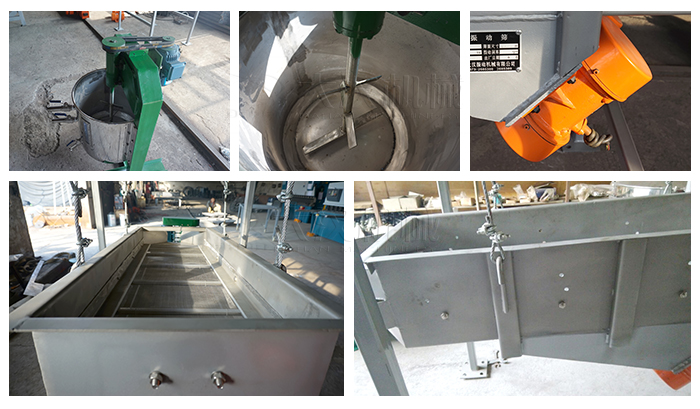 整個設備由篩箱、網架、篩網、2臺臥式振動篩電機、減震彈簧、進出料口、上蓋組成,除此之外還有高度可按需求定制的支架通過四個吊鉤把整個設備吊掛起來使其處于懸空狀態。